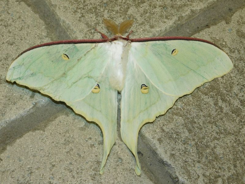 -- オオミズアオ♂@高尾山口駅改札の床 6:14