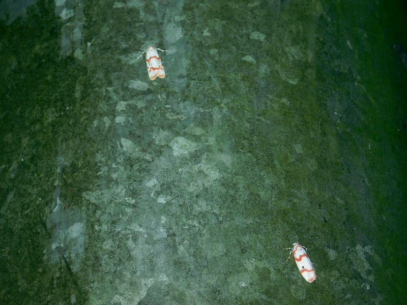-- アカスジシロコケガ♂(左上)と同♀(右下)