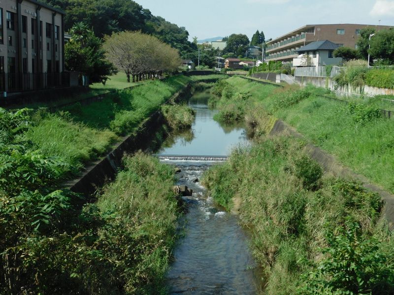 -- 住吉橋より、湯殿川上流を望む。10:20