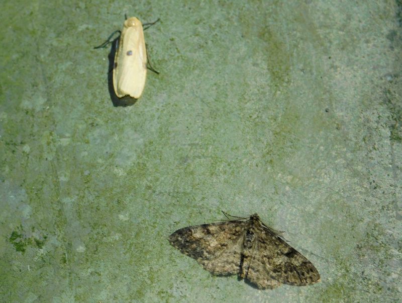 -- ヨツボシホソバ(上)とニセオレクギエダシャク。