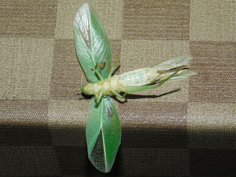-- アオマツムシが、肢をバタバタ。