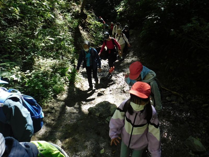 -- 飛び石区間も延々と小学生の列。