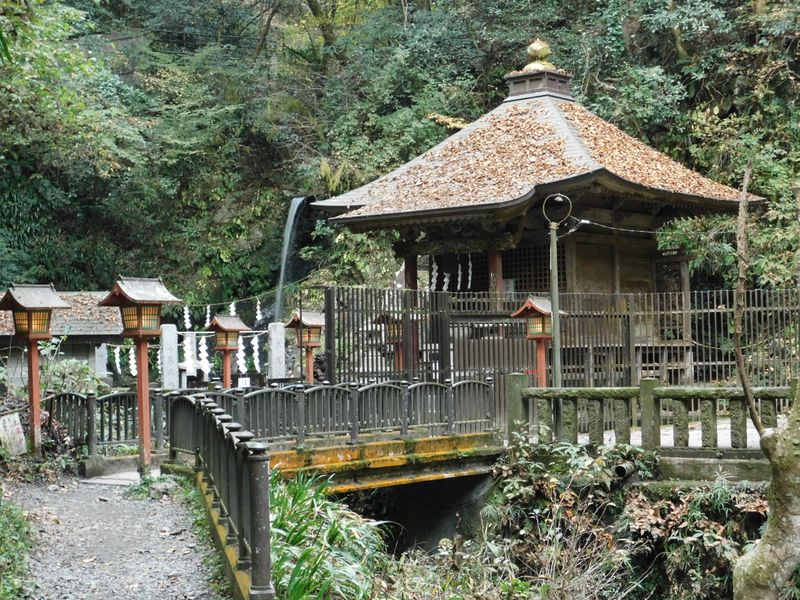 -- 琵琶滝水行道場。屋根に落ち葉。7:19