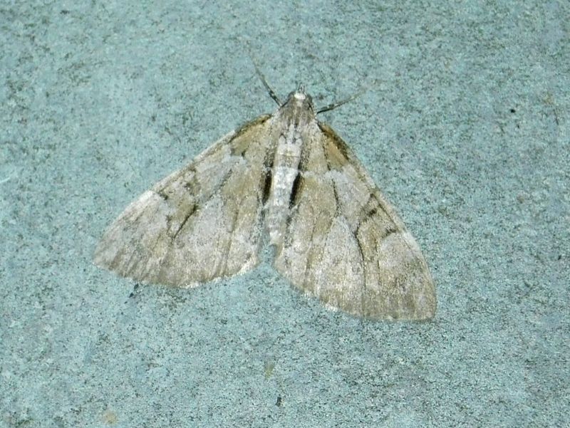 -- そのすぐ近くに、小型のウスクロオビナミシャク(♂?)