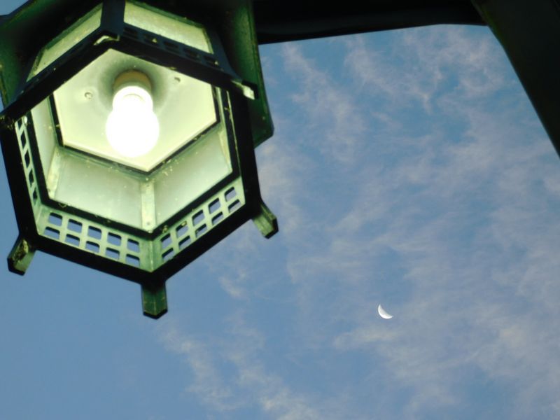 -- 空に二十四夜の月。6:34