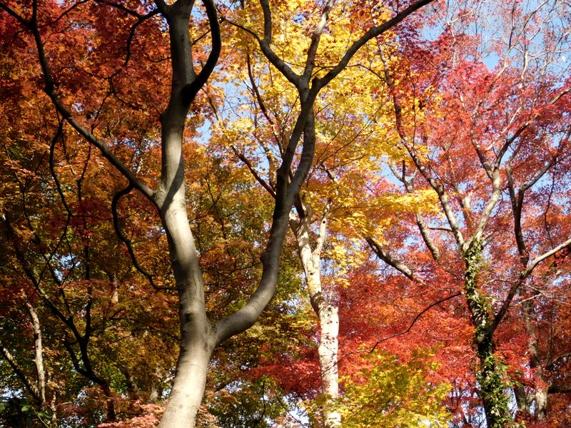 -- 仏舎利塔付近の紅葉は見頃。10:13