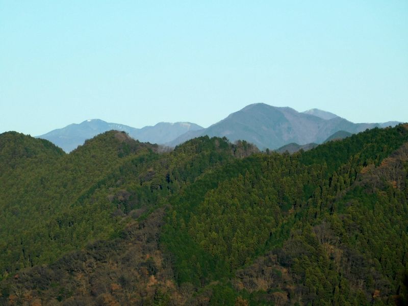 -- 雲取山(左)〜鷹ノ巣山。手前に御前山。