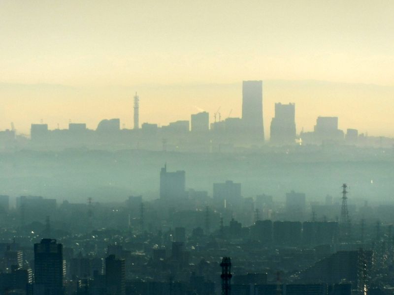 -- 横浜みなとみらい方面を望む。7:49