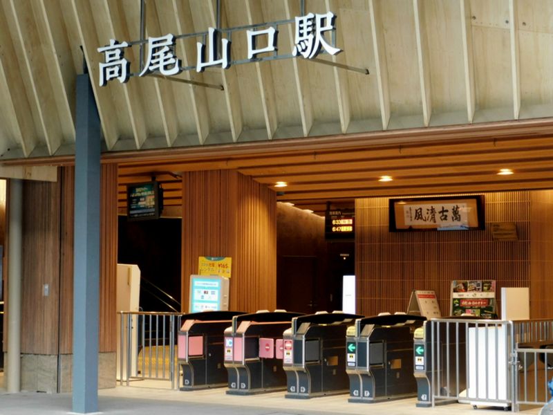 -- 高尾山口駅の改札を出る。6:27