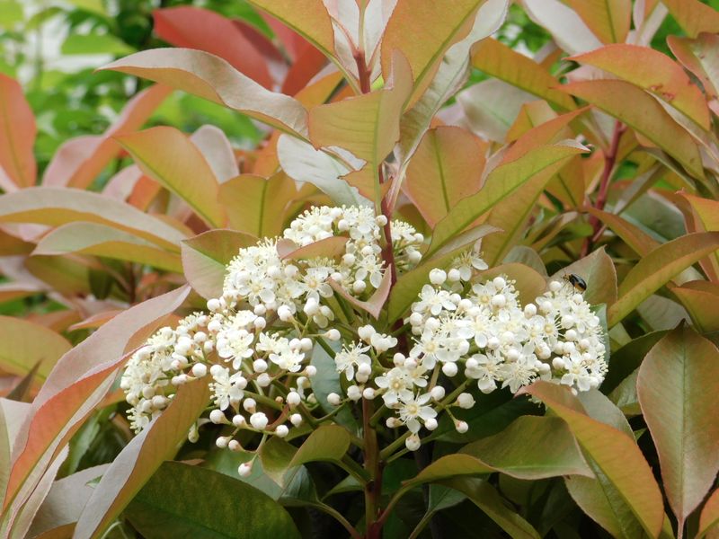 -- 生垣のベニカナメモチ:花はカマツカに似る。