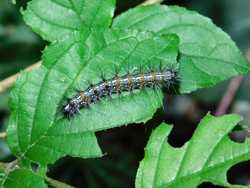 -- クワゴマダラヒトリの幼虫:右が頭。