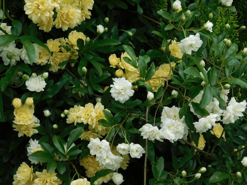 -- 生垣のモッコウバラ。