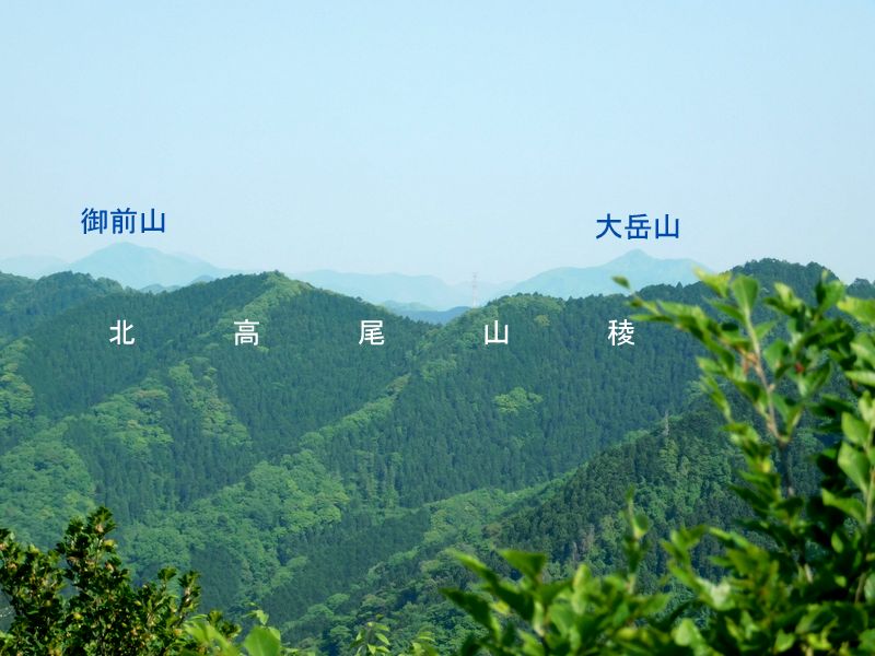 -- 北高尾山稜の彼方に、御前山と大岳山。