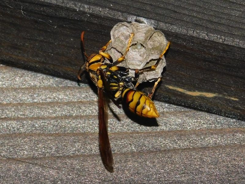 -- キアシナガバチ:独りで巣作り