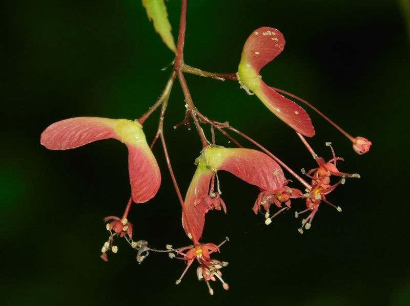 -- イロハモミジの花と翼果(プロペラ)。