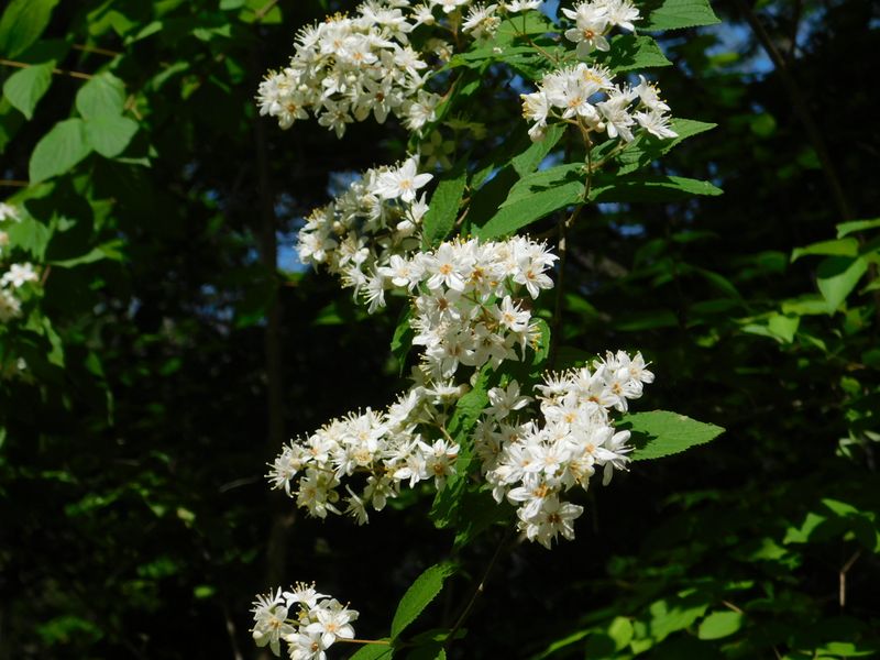 -- マルバウツギ:各所で花盛り。