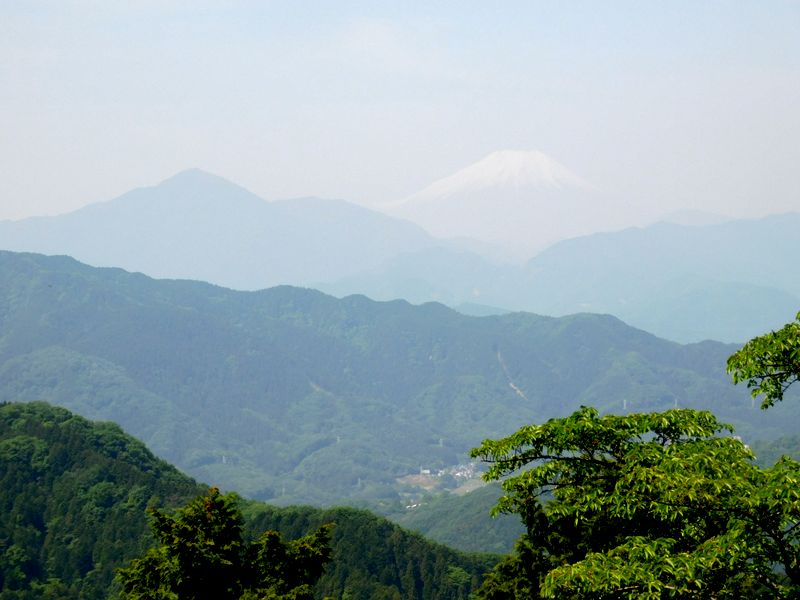 -- うっすらと望める、富士山と大室山。9:37