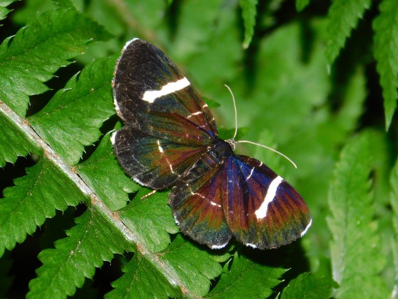 -- シロオビクロナミシャク:フラッシュ光を反射。