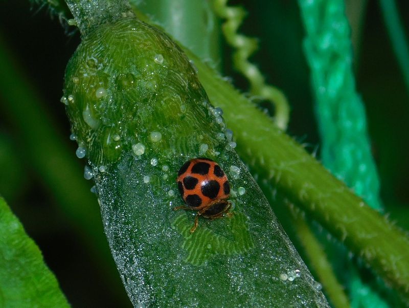 -- キュウリを傷める、トホシテントウ。