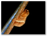 2023年11月20日(月) ◆高尾山でウスタビガと出遭うことは、本当に難しくなったようだ。そこで一つの工夫として、ナイト探索を試みた。蛇瀧橋からいつもの逆コースで三滝を巡る。◆相変わらず、ケンモンミドリキリガが多い。4日前に見なかったニトベエダシャクも出現。ウスゴマダラエダシャクは、灯下での飛び方が派手で目立つ。◆この晩、3頭のウスタビガを見ることができた。1頭目は紅顔の少年が持っていた網かごの中。毎日毎日、高尾に通い続けて、きょう初めて1頭を採ることができたと、嬉しそうだった。◆その子の話を聞き、薬王院まで足を延ばした。ていねいに探し、ようやく1頭の♀を発見。♂待ちの♀らしく、全く飛ぶ気配がなかった。◆3頭目は、草むらに飛び込んだ♀。間近で様子を見ると、産卵行動中らしい。そして再び飛び立ち、別の草むらに消えた。