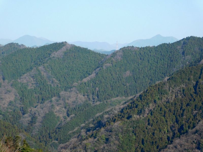 -- 高尾山駅前より、奥多摩の御前山と大岳山を望む。