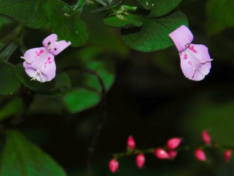 -- ハグロソウ:下の赤はミズヒキ