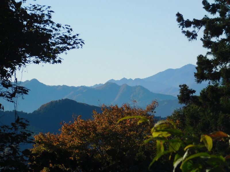 -- 霞台より、大山(右)と三峰山。その手前は相州アルプス。