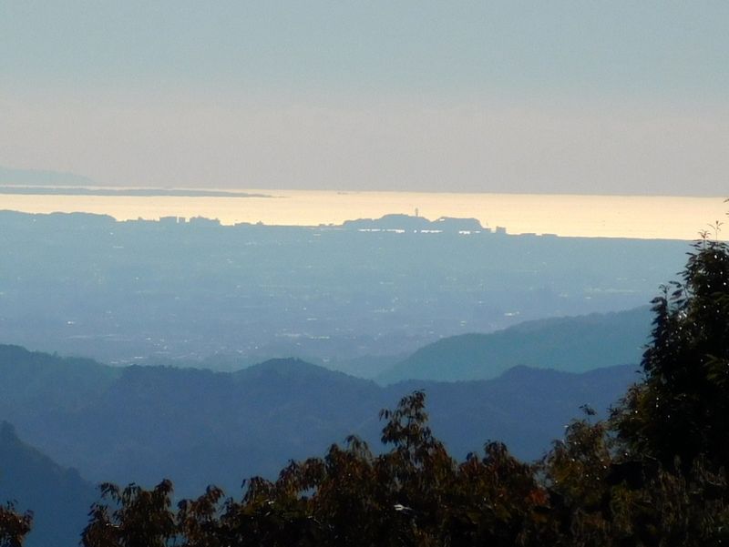 -- 高尾山頂より望む、相模湾と江の島。9:34