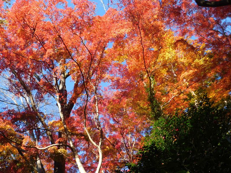 -- 有喜苑(仏舎利塔)の紅葉とサザンカ。