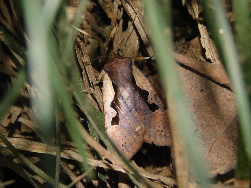 -- ヤマノモンキリガが飛んできて草むらに入った。