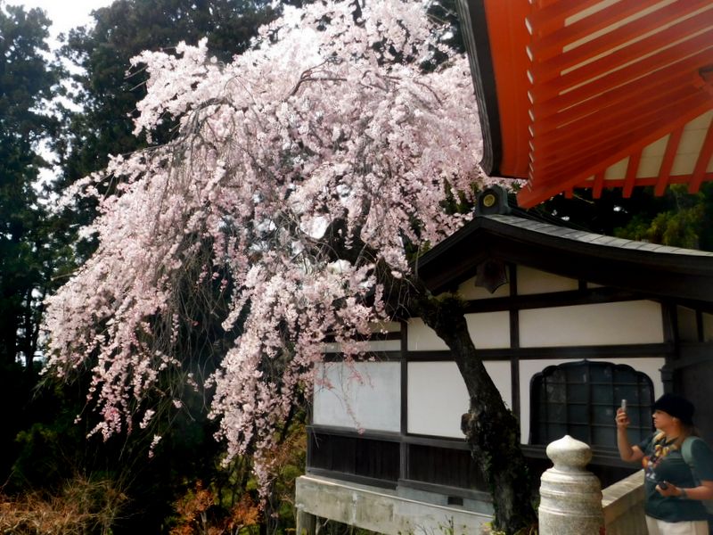 -- 薬王院仁王門前のシダレザクラ。