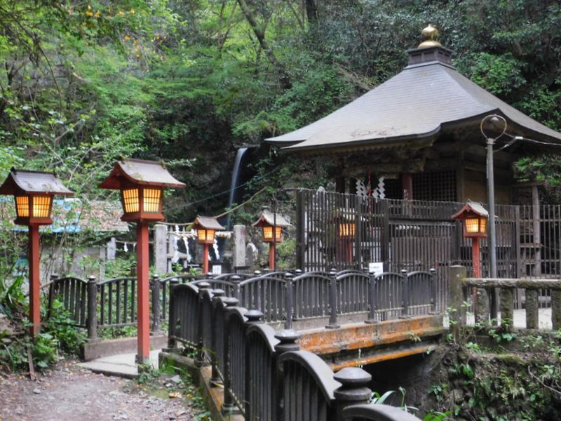 -- 琵琶滝水行道場の灯篭に灯り。18:04