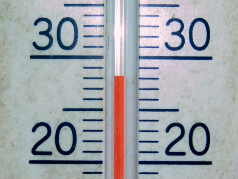 -- 汚れが進んだ、蛇瀧橋の温度計。12:46