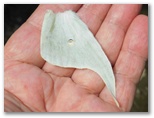 2025年8月16日(土) ◆オナガミズアオを撮りたくて、また秋ヶ瀬公園を訪ねた。猛暑日になりそうだったので、飲料1.4リットルを準備し、うち1.2リットルは冷凍していく。日焼け止めローションと、虫よけミストも忘れない。 ◆バラバラ状態の、オオミズアオやオナガミズアオの翅が次々と見つかる。しかし生体が一向に見つからない。森の中を何度も何度も巡り歩く。 ◆終了予定時刻の12時になっても成果が出なくて、1時間の延長を2度行った。 そして3度目のアディショナルタイムも終わろうとする頃、帰宅に必要な残存体力を考え、「ピクニックの森」を去った。◆重い足で「野鳥園」に向かう途上、オナガミズアオらしい特徴を持つメス個体を見つけた。少々汚れているが、おそらく先ほどの通り雨で、葉の汚れが後翅に付着したのだろう。鱗粉も擦れているが、大きな欠損はない。感謝。 ◆いつか新鮮な個体と出遭うためのタイミングと場所とを考えながら、猛暑の道を駅まで歩いた。 ◎ 浦和駅 7:15 == 7:39 下大久保 7:40 --- 7:54 秋ヶ瀬公園 15:57 --- 16:10 さくら草橋 16:11 --- 16:31 西浦和駅 全 8時間51分 29,922歩 単独 ❀❀❀ ❢❢