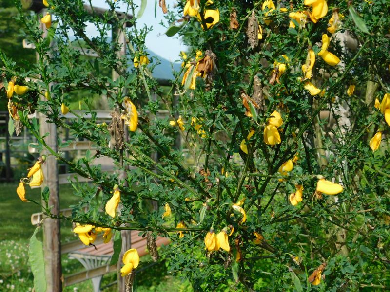 -- 蓑虫(チャミノガ)だらけのエニシダ。