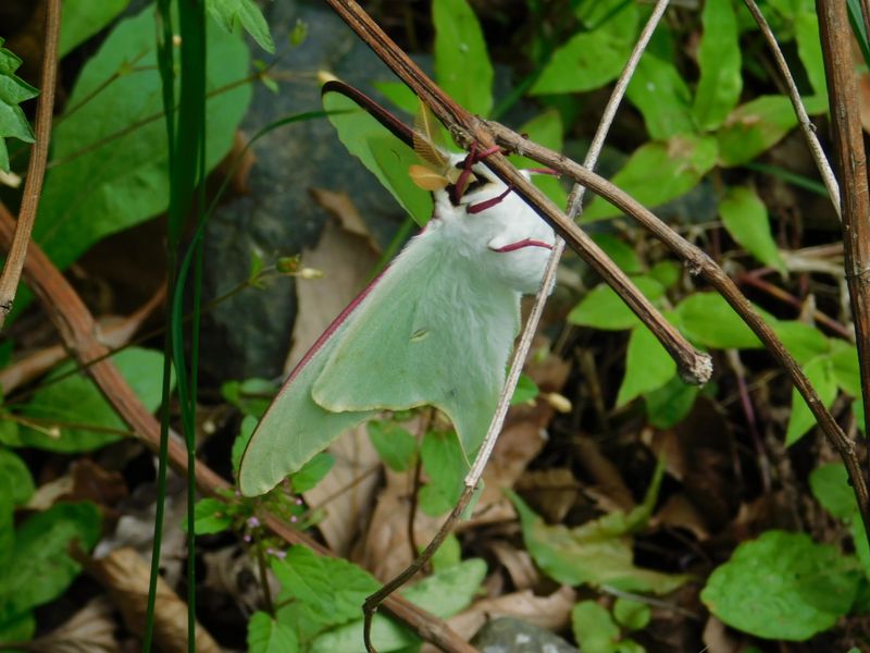 -- そのとなりに、オオミズアオを見つけた。地上35cm.