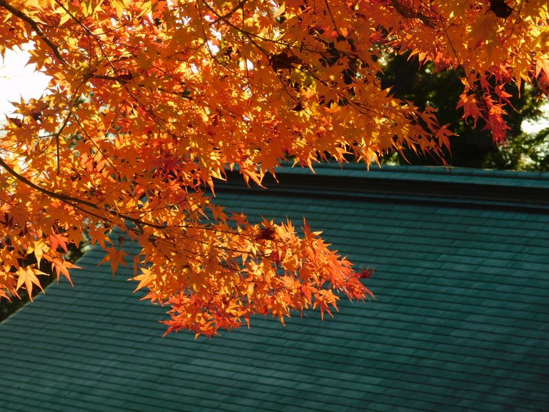 -- 黄〜橙色のモミジを逆光で。7:55