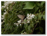 学習の歩道に進むと、白いウツギの花に蝶が群がっていました。また白い蛾が、キャベツ畑のモンシロチョウのようにたくさん飛び交っていましたが、種を確認することはできませんでした。歩きながら、やや酸っぱいモミジイチゴと、甘みの増したクサイチゴの実を、いくつもつまみ食いしました。薬草の原料になるというヘビイチゴは食べる気がしませんが、実をつまんでも外れません。