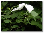 岐路は、5号路を南回りで歩きました。ホトトギスの声が「トッキョキョカショー(特許許可証)」と聞こえます。後から追いついて来た男性から、アサギマダラを見なかったかと尋ねられました。「1頭だけですが、見ました」と答えると、5月に一丁平に咲いていたホオノキの花がとても美しかったとのこと。きょうの収穫は、すばらしいヤマボウシだと喜んで話していたので、「あれは植栽なのでは?」とは言えませんでした。たまたま咲いていたイナモリソウの花を教えてあげると、「可愛いですね」と喜ばれました。