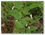 5号路に入ると北回りに歩き、続いてもみじ台の北面の巻き道を歩きました。このあたりを歩く人は、植物に関心を持っているようです。ロープの内側に、シモバシラが自生し、「踏まないように」との注意書きがありました。花は初秋から晩秋にかけて咲き、その後で氷の花が初冬に咲きます。ナルコユリの群生地では、みずみずしい花がたくさんぶら下がっていました。南面の巻き道を歩けば、ヤマユリが同じような葉と茎を展ばしていることでしょう。