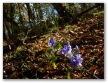 押立山(770m)と呼ばれる小丘に立ちました。赤帽白杭や短い杭類が数本立っています。時計は早くも12時ちょうど。枝越しに丹沢を眺めていたら、里の方から正午のメロディーが聞こえてきました。このメロディーを鷹落場で聞きたかったのですが、マイペースを守ることは安全登山の基本です。そして鷹落場まで3度目の急登。残る標高差はわずか50m。トリカブトが咲いていれば足を止め、丹沢の峰々を見てはカメラを向け、休み休み登って行きました。
