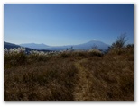 矢倉岳の空はとびきり大きく、開放感に満ちていました。きょうは朝から富士山を小出しに見てきましたが、ここで全身を惜しみなく見せてくれます。明神ヶ岳、大涌谷、金時山など、引き立て役も富士山に相応しい堂々とした姿。そして、矢倉岳のすばらしさの一つが、海を望めることです。相模湾、東京湾、房総半島を望めば、溜まったストレスも解消、皆消。展望台の跡でしょうか、枡席のような枠組みがあり、靴を脱いで座れるようになっています。大休止しましょう。