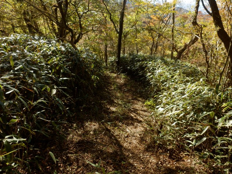 -- 左右に笹が群生する道。12:38