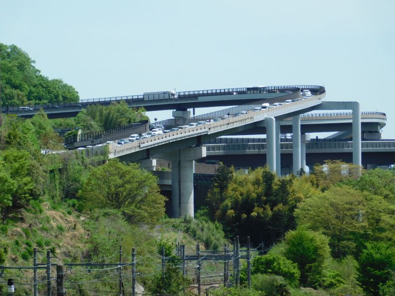 -- 中央道の下り線に入りたい車が渋滞。10:59