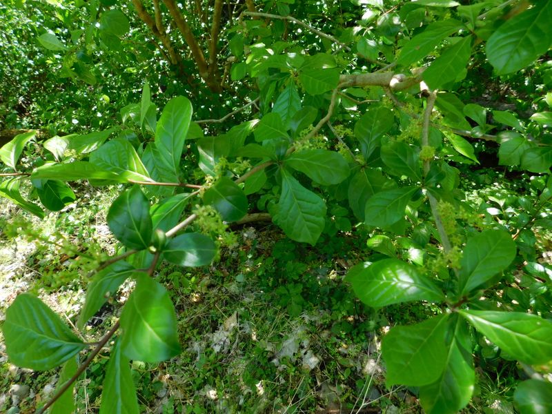 -- コクサギ(雌雄異株)の雄花がどんどん落ちる。11:56