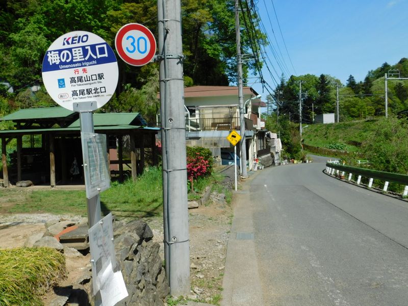 -- 梅の里入口バス停は、帰路に便利。13:35