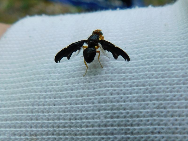 -- 右腕にとまったナミガタハマダラミバエ。11:02