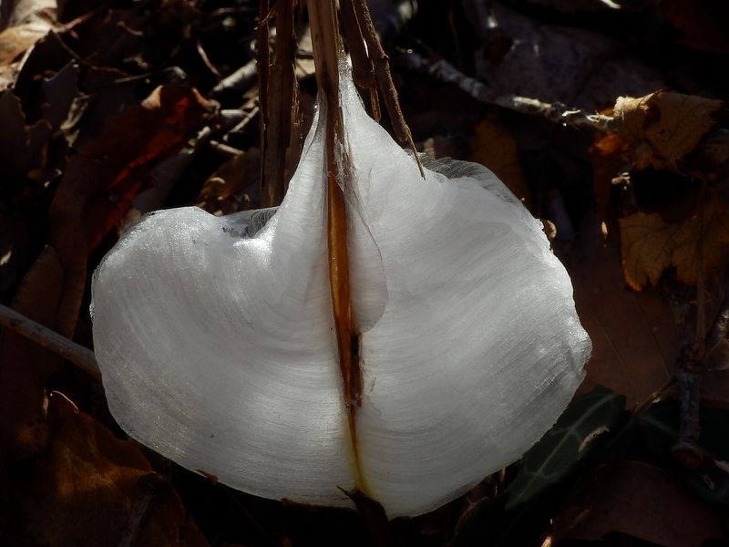 -- 茎の割れ目から出た水が凍りながら成長する。9:23
