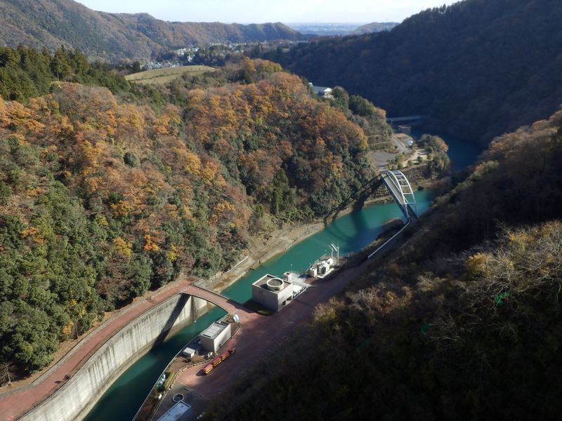 -- ダム堤頂より、中津川を見下ろす。11:29