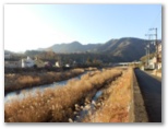 中津川沿いの道を石小屋ダム目指して歩きます。目を引くのは、マンリョウやナンテンの真っ赤な実。家々の庭先の素朴なアクセントになっています。この季節、庭にも野にも、花はあまり見られません。国道412号をくぐり、あいかわ公園への道を右に分け、まっすぐ行くと、石小屋ダムです。古代ローマかインカ帝国の、巨大石造物のようなデザインですが、これは重力式コンクリートダム。大規模な宮ヶ瀬ダムと、この小さな石小屋ダムが、セットで運用されています。